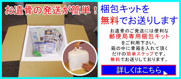 梱包材もセットされておりますので、骨箱をお入れ頂くだけの簡単ステップでご郵送頂けます。